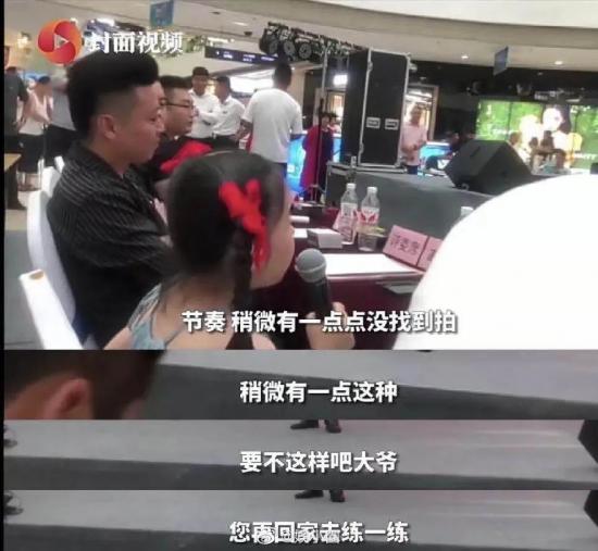 小女孩一點不怯場,說話流暢,點評中能模仿,又能唱歌,架勢很足。