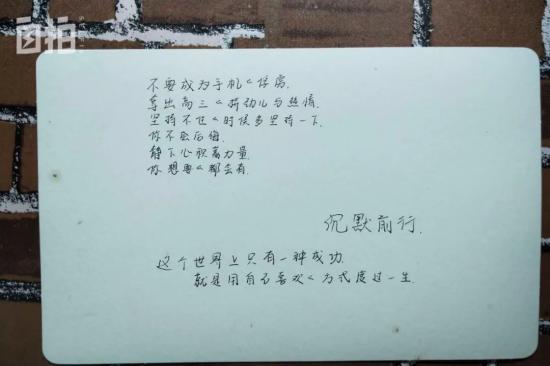 ▲本科宿舍裏貼在牆上的小卡片。