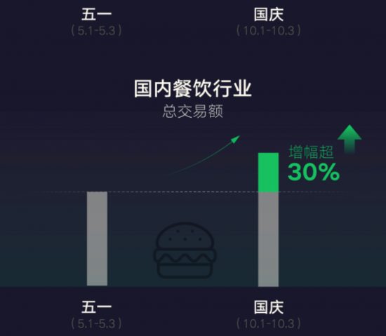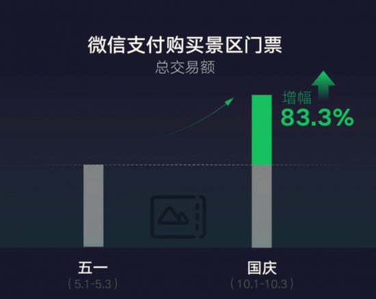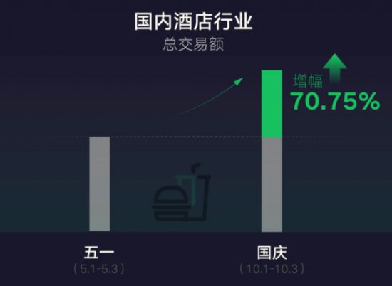 10月1日-3日,酒店行業和餐飲行業微信支付總交易額較5月1日-3日分別增長70.75%和30%。